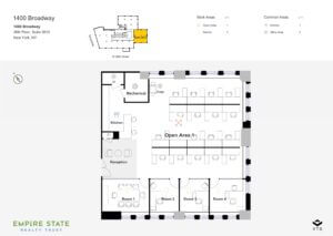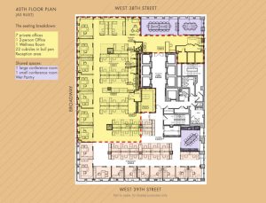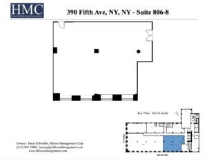 Suite 806-8 is a recently demolished, 3,205 sq. ft. office space available immediately for lease. With windows facing 36th Street, the space has an open floor plan. In addition, it is fully customizable for any fashion brand’s specific needs. Lastly, asking rents cost $45.00/SF/YR plus a proportional share of electrical cost.