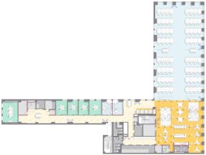 Suite 005 – 100 spans a generous 7,547 sq. ft. and is designed to accommodate around 60 people comfortably. Additionally, the suite is currently available and offers a flexible lease type.
