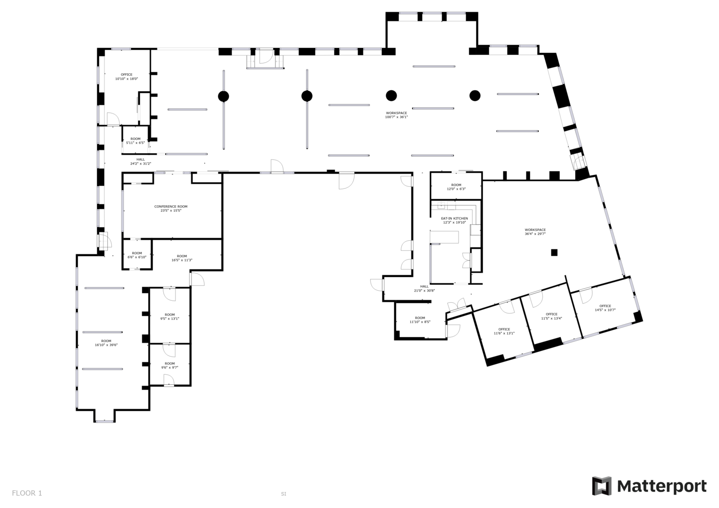 To navigate, click areas of the floor where you would like to move. Click and drag to rotate view. If available, you may use arrow keys to navigate the space. Please note the ruler feature, "Dollhouse" and "Floorplan" views (bottom left).